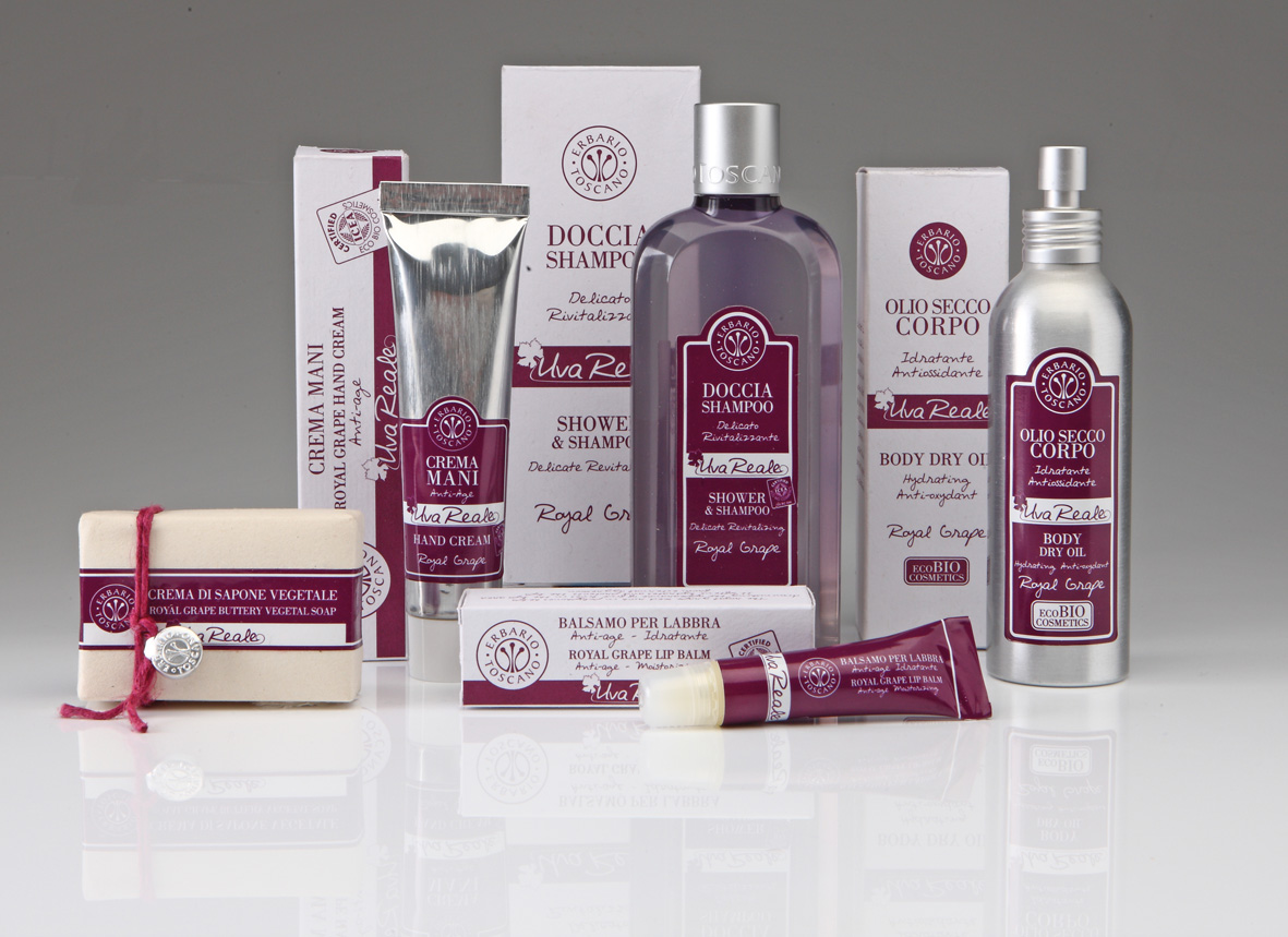 La Linea Uva Reale è il risultato della filosofia di Erbario Toscano qualità, cura della pelle e rispetto dell’ ambiente.